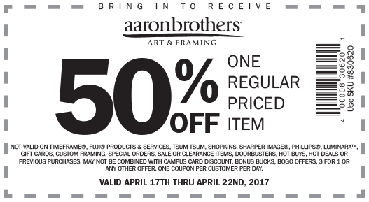 Details: Get 50% off one regular priced item. One coupon, per customer, per day.