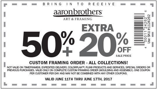 Details: Get 50% Off Custom framing order - All collections + Extra 20% Off sale price. One coupon per customer per day.
