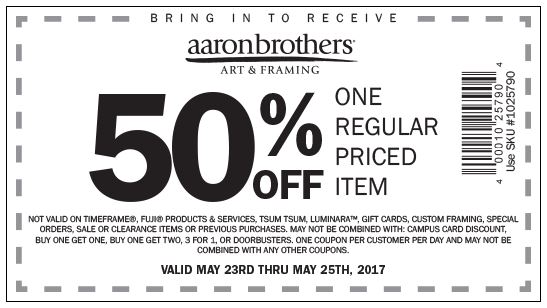Details: Get 50% Off Any One Regular Priced Item. Limit one coupon per customer per day.