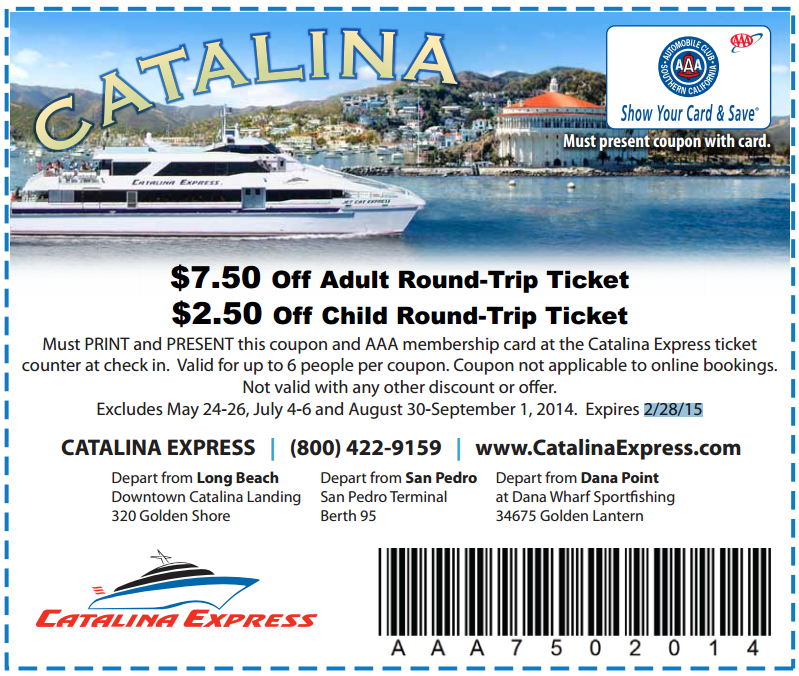 Details: Catalina Express $5.00 off Adult Round Trip. Expires on 05/31/2014.