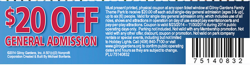 Details: $20 off Monday-Friday & $15 off Saturday-Sunday for adult single-day general admission. Ends 8/17/14