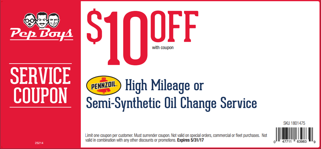 Details: Get $10 off Pennzoil High Mileage or Semi-Synthetic Oil Change Service. Limit one coupon per customer.