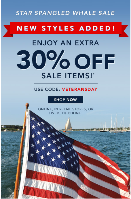 Details: Star Spangled Whale Sale! Take an Extra 30% off sale items. New styles added. Not valid at vineyard vines outlet stores.